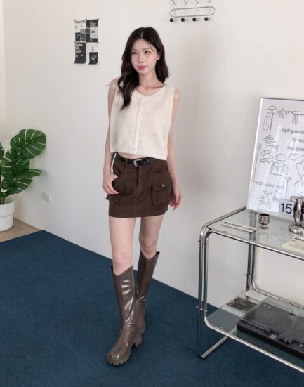質感滿分--自帶高級感優雅針織無袖背心 2501231-知性杏