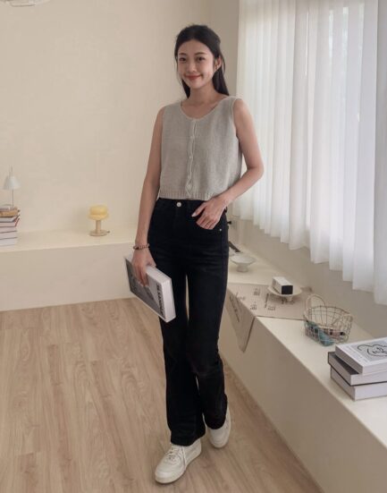 心花開—美型方領親膚含杯針織背心 2506008-個性灰