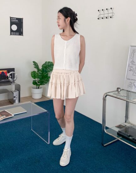 韓系甜美--法式娃娃荷葉背心 2501236-淺淺灰