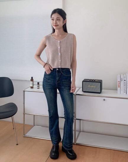 質感霧調--高級感不飽和高針織背心2501209-奶霧粉