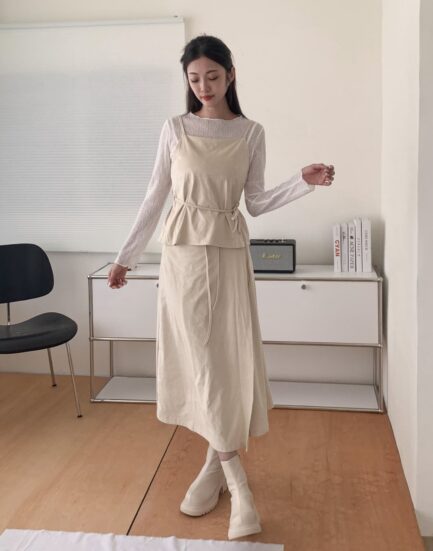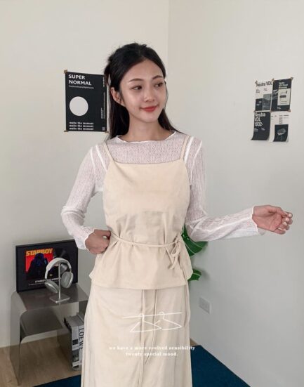 優雅氣質首選--麂絨簡約親膚綁帶細肩背心2501221-知性杏