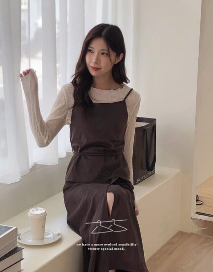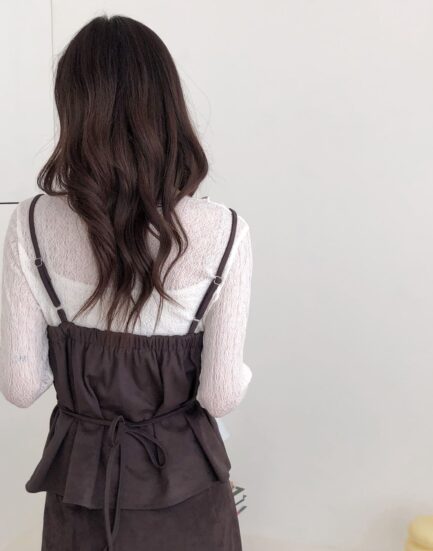 優雅氣質首選--麂絨簡約親膚綁帶細肩背心2501221-咖啡牛奶