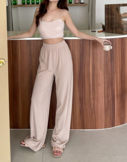 慵懶女孩風格--木耳邊細針織平口套裝 2521002-氣質白