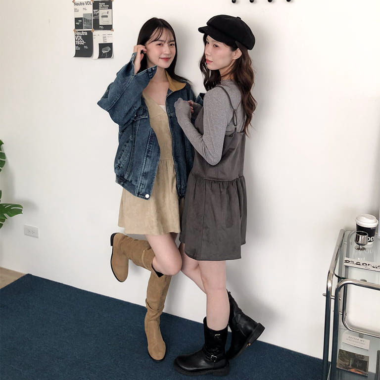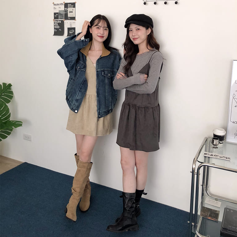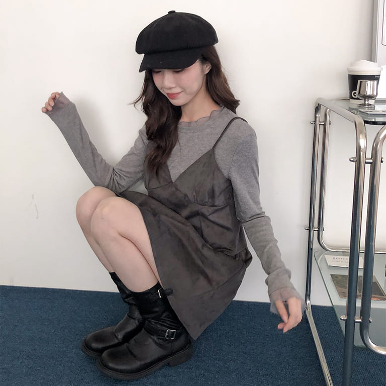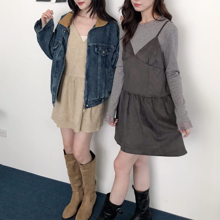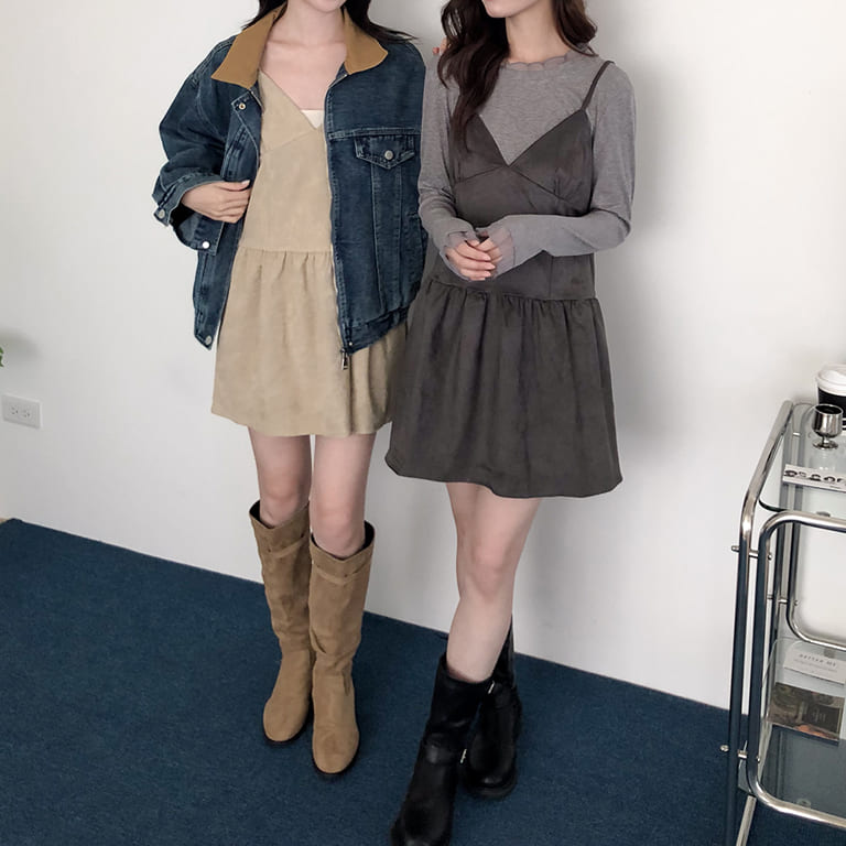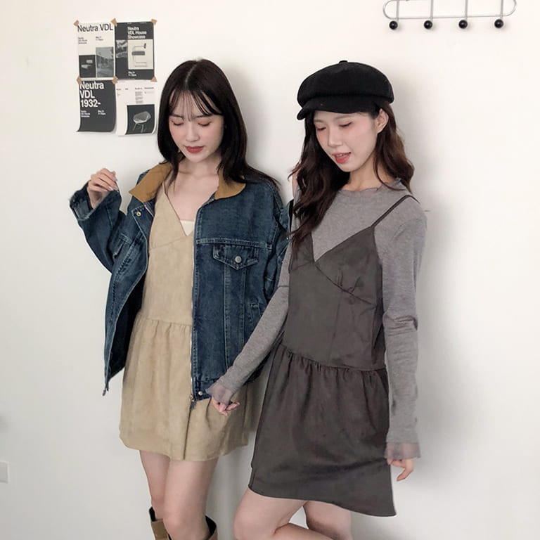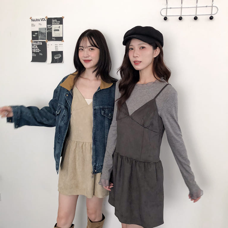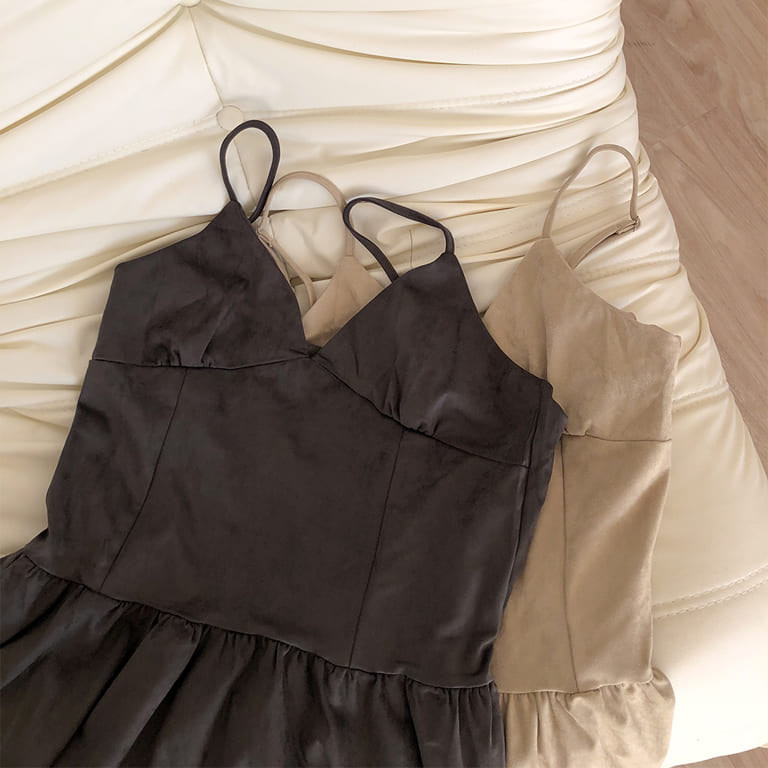 韓妞最愛的秋冬質感單品登場!🍂柔軟麂絨面料搭配細肩設計 微露鎖骨超顯氣質✨修身剪裁勾勒出完美比例 甜美中帶點小性感💋內搭高領或罩針織外套都時髦到不行~一件就能完成韓系街頭氛圍感穿搭🇰🇷🖤