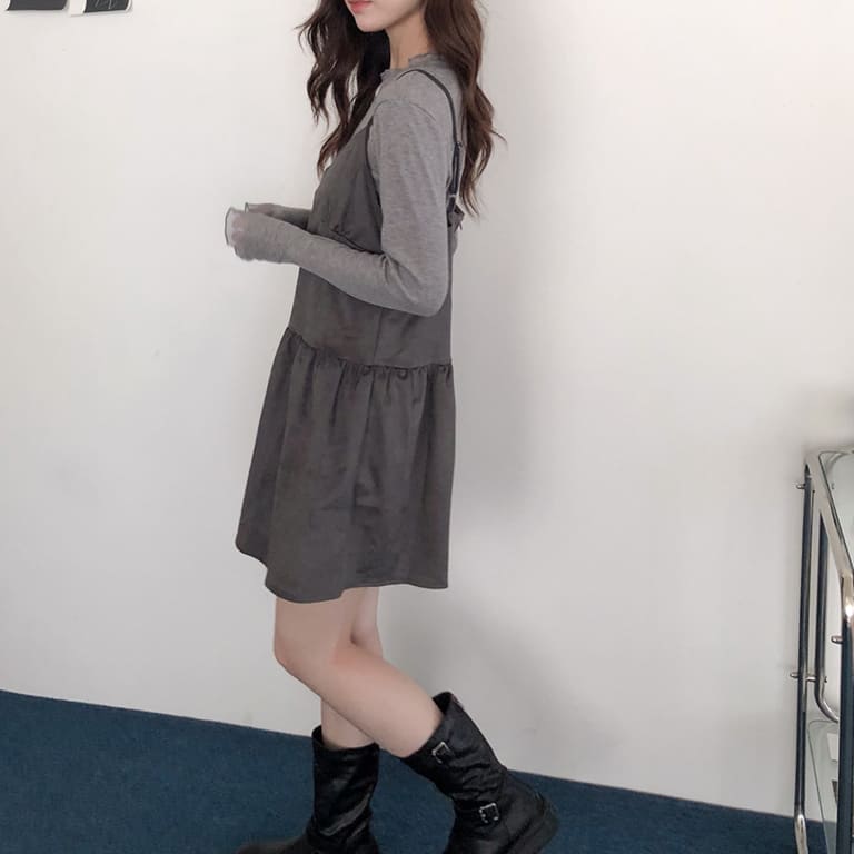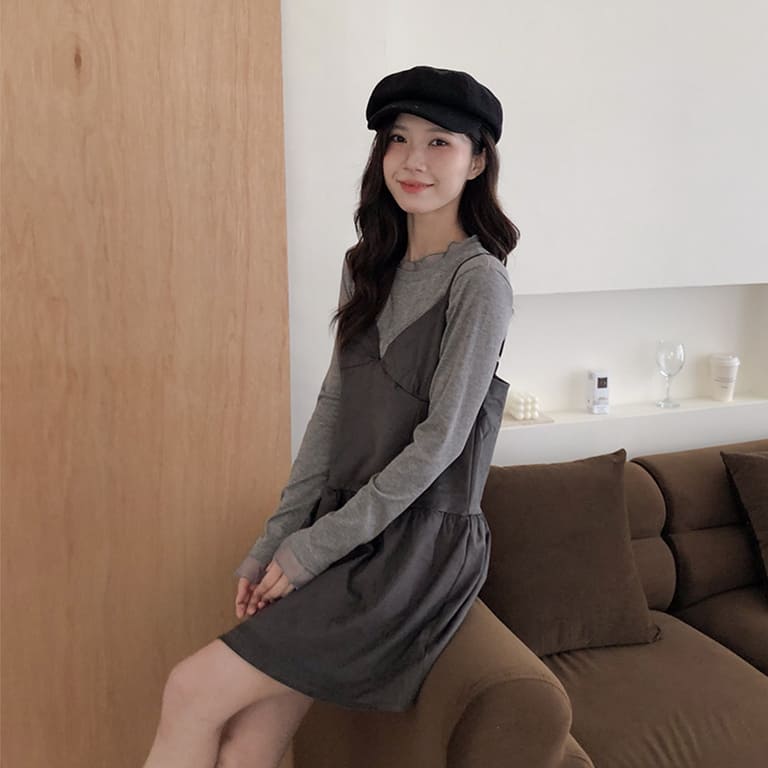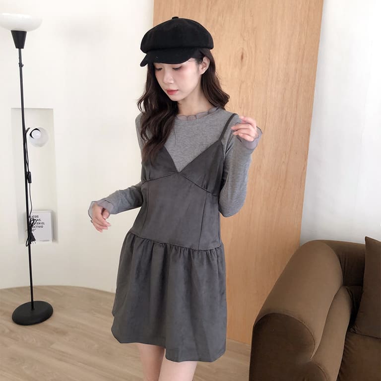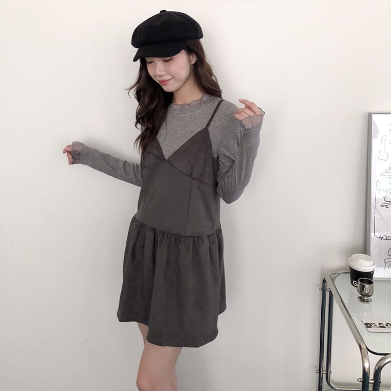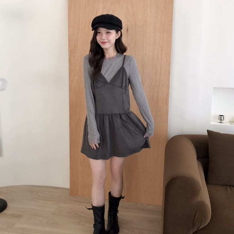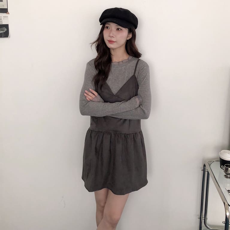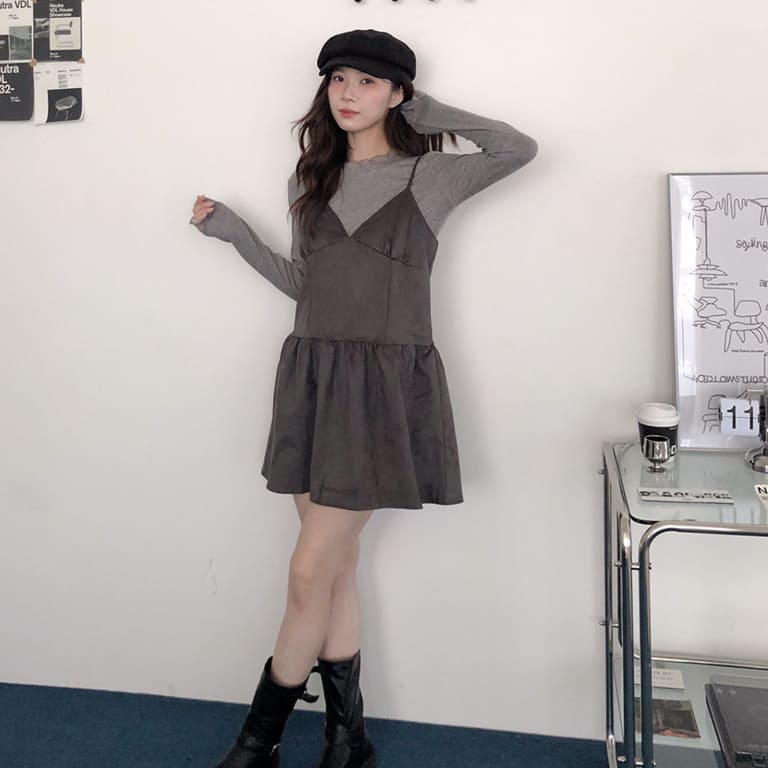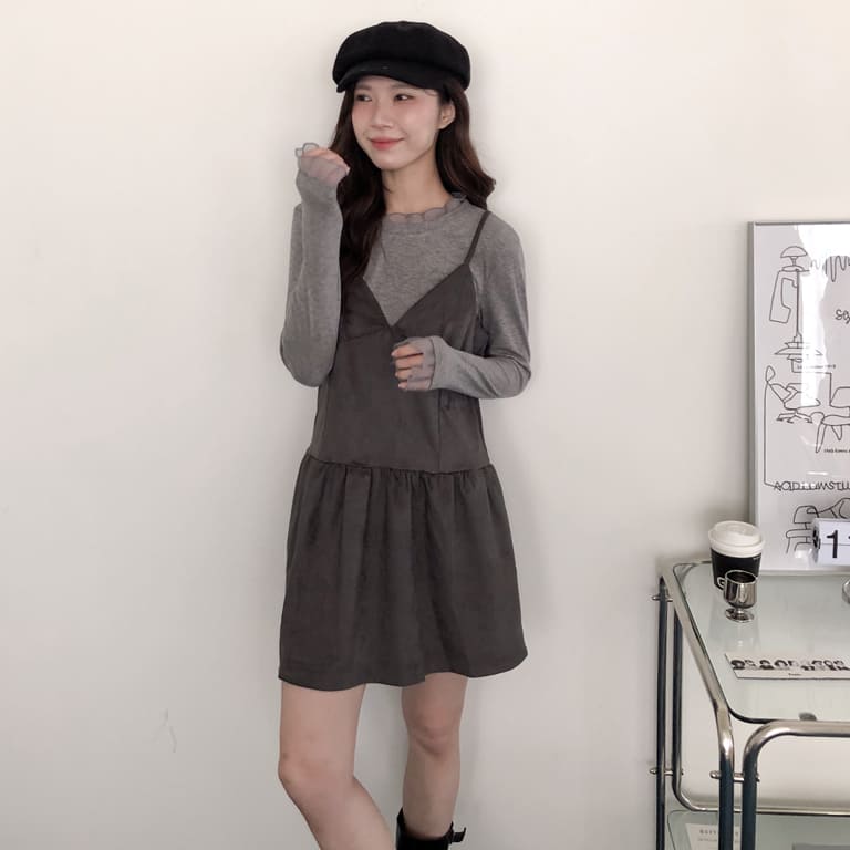 韓妞最愛的秋冬質感單品登場!🍂柔軟麂絨面料搭配細肩設計 微露鎖骨超顯氣質✨修身剪裁勾勒出完美比例 甜美中帶點小性感💋內搭高領或罩針織外套都時髦到不行~一件就能完成韓系街頭氛圍感穿搭🇰🇷🖤