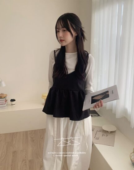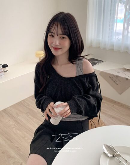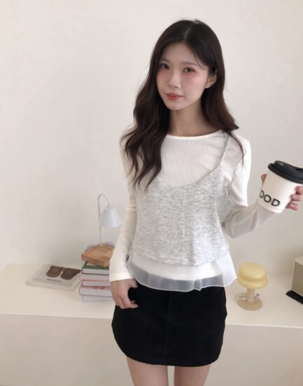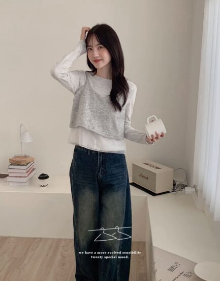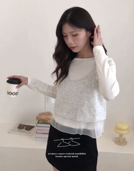 個性韓妞--兩件式疊搭風格針織棉上衣 2501243-霧調灰