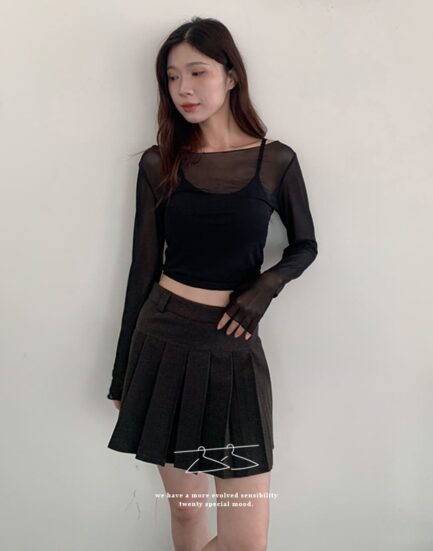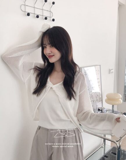 氣質韓妞先修班—兩件式扭結鏤空針織上衣 2502040-淺淺灰