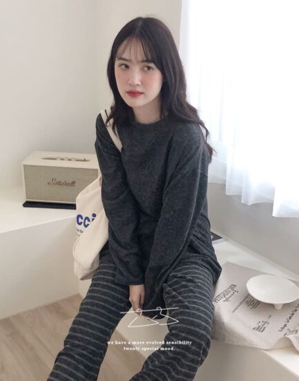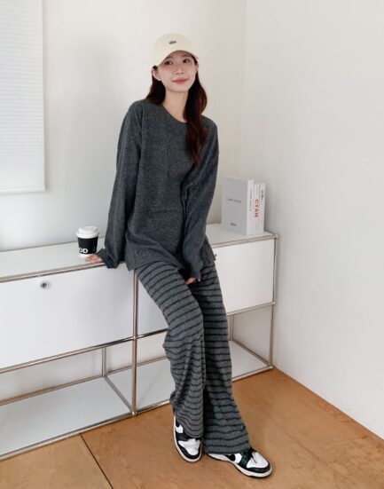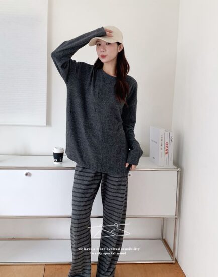 無印慵懶氛圍—滑順保暖混羊毛針織套裝 2521020-酷帥灰