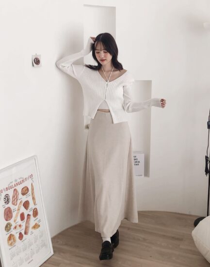 知性小秘書穿搭—兩件式滑感親膚細針織上衣 2501252-氣質白