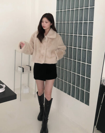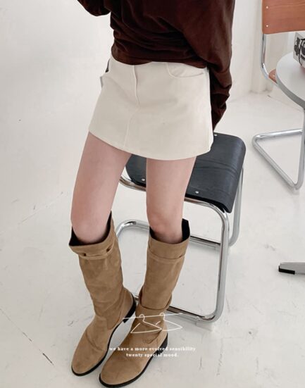 自帶優雅光—高磅挺版貴氣修身磨毛短裙 2513028-奶油杏