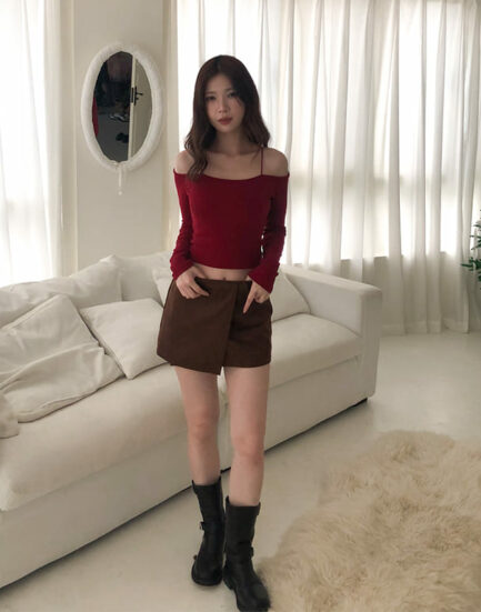 質感女孩必備—麂皮絨簡約格調雙層短褲裙 2613001-美式咖啡