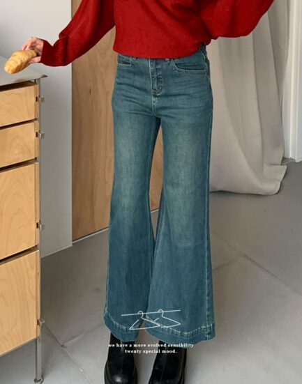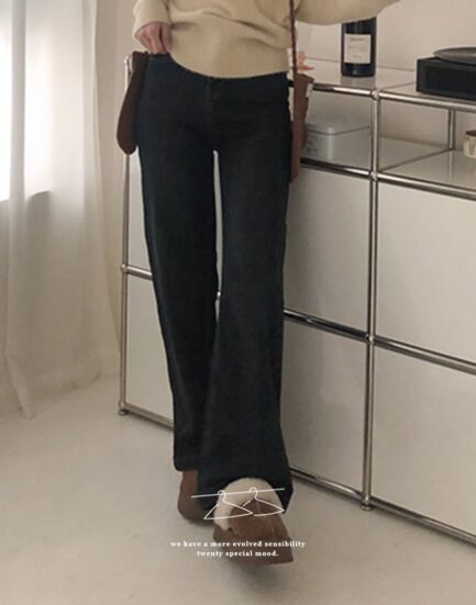 長腿黃金比例—復古刷舊薄絨親膚牛仔長褲 2612002-丹寧藍