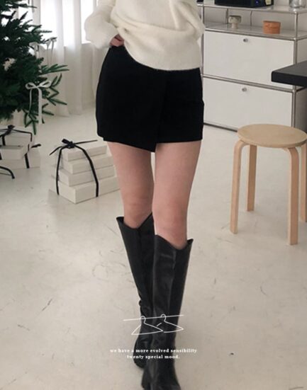 自帶優雅光—高磅挺版貴氣修身磨毛短裙 2513028-百搭黑