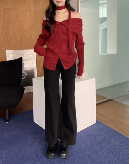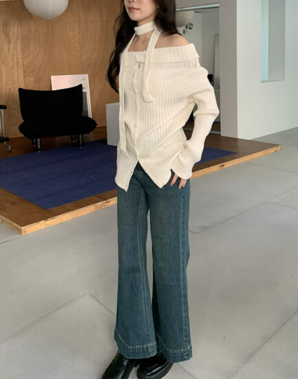 質感比例上身—挺版內刷毛保暖闊腿褲(附腰帶 2612001-丹寧藍