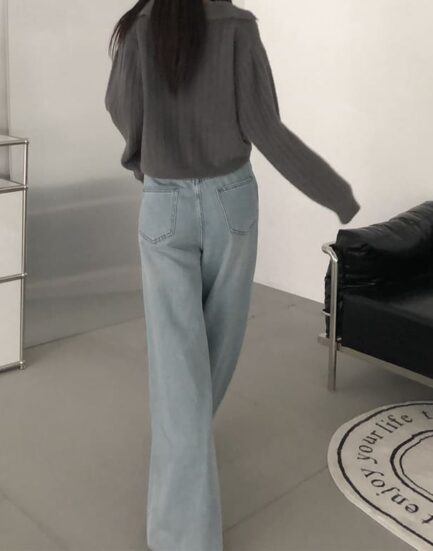 小隻女孩黃金比例-軟料迦績牛仔直筒寬褲 2612006-丹寧藍