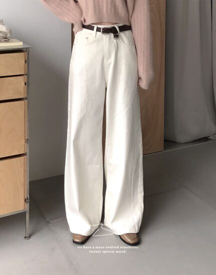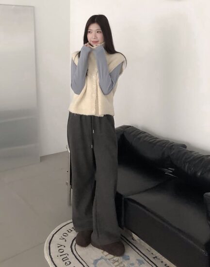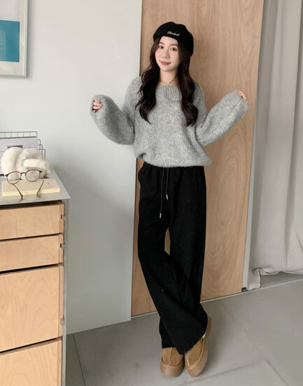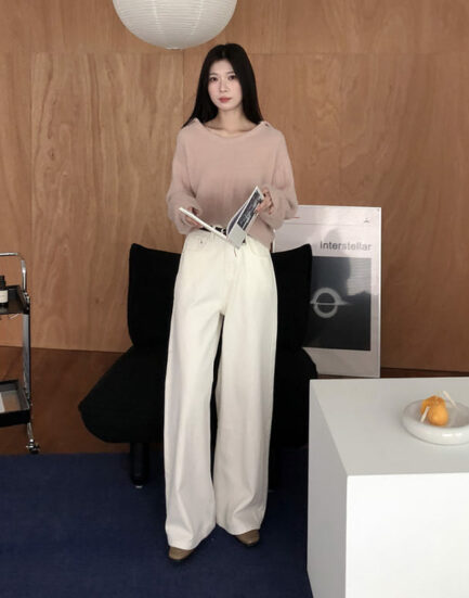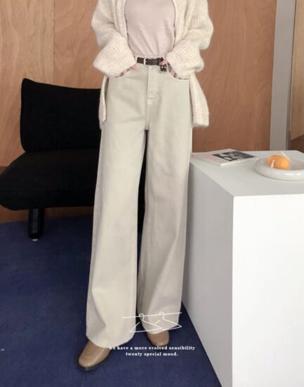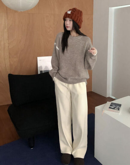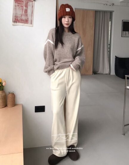 質感比例上身—挺版內刷毛保暖闊腿褲(附腰帶 2612001-奶灰