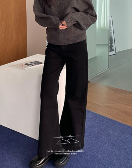 小隻女孩黃金比例-軟料迦績牛仔直筒寬褲 2612006-百搭黑