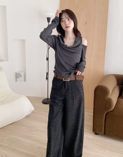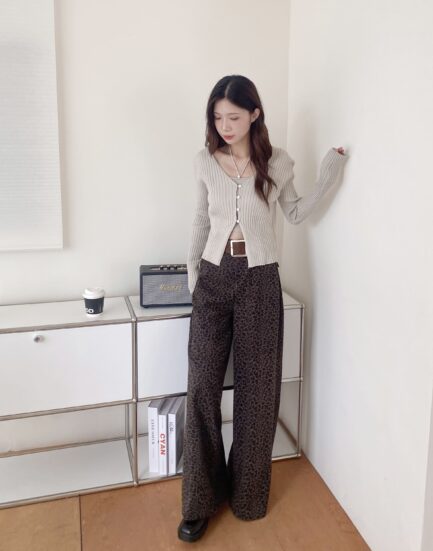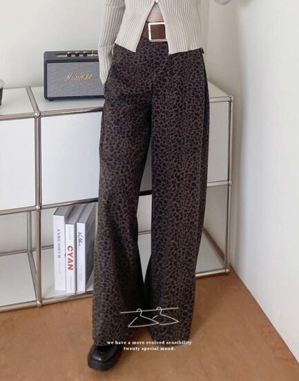 秘密甜心—東大門質感挺版豹紋長褲(附皮帶 2512035-霧調灰