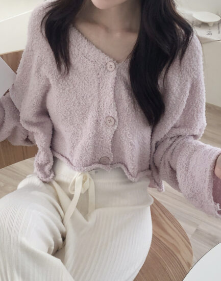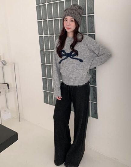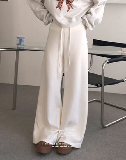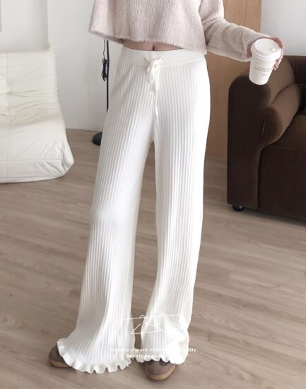 高個友善—超美坑條親膚荷葉邊針織落地長褲 2512036-氣質白