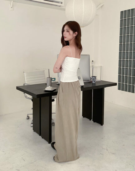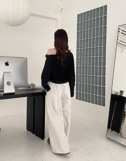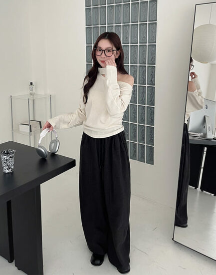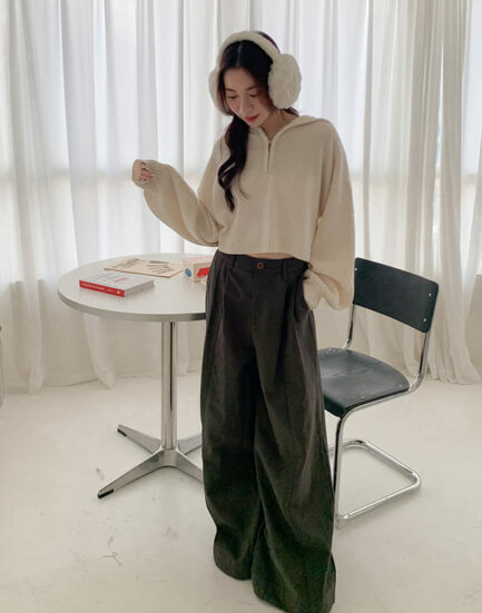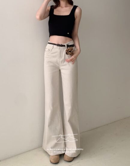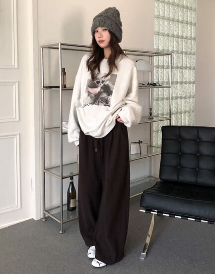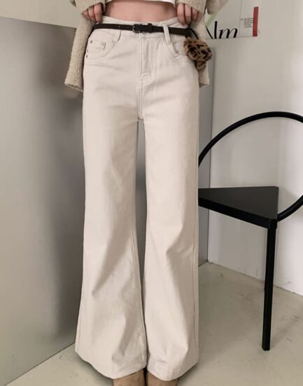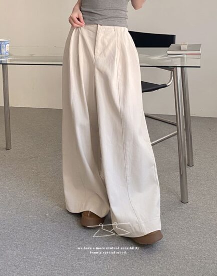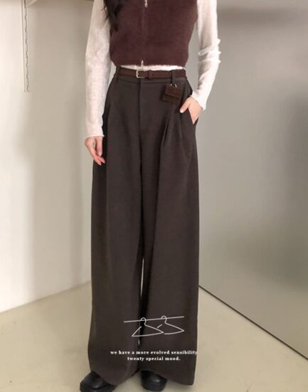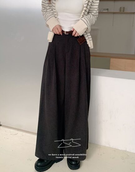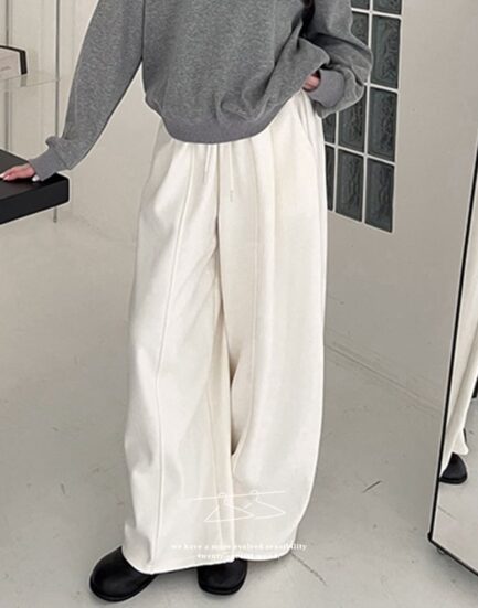 質感比例上身—挺版內刷毛保暖闊腿褲(附腰帶 2612001-奶灰