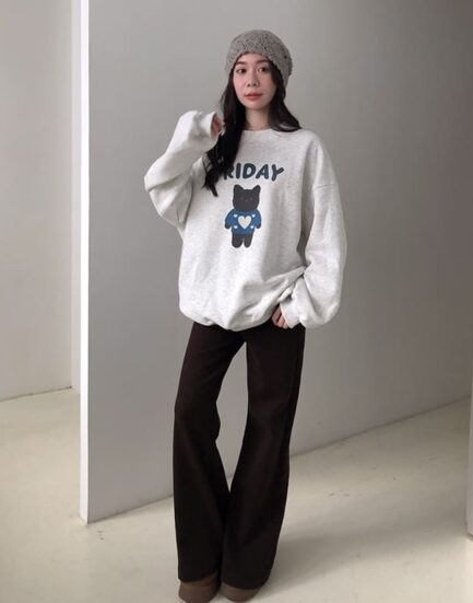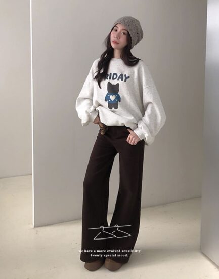 東大門新品—親膚簡約內加絨棉質彎刀長褲 2612003-咖啡可可