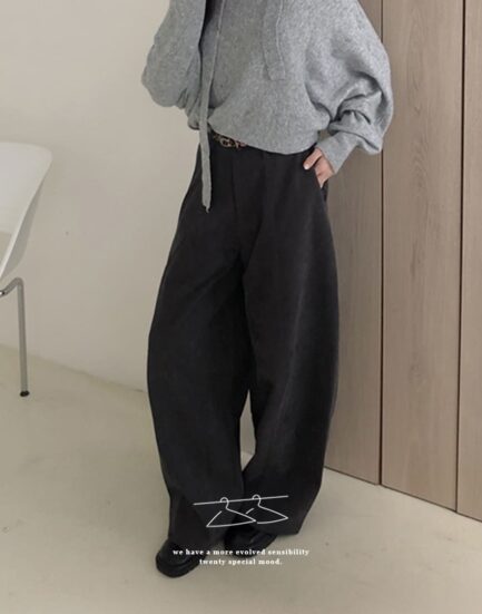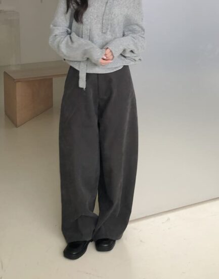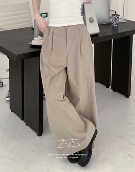 高質感穿搭—高磅挺版磨毛卡其美型闊腿褲 2512044-酷帥灰