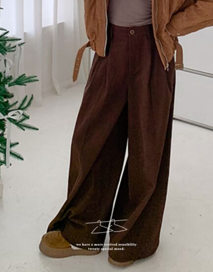 高質感穿搭—高磅挺版磨毛卡其美型闊腿褲 2512044-咖啡可可