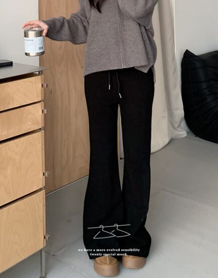 東大門新品—親膚簡約內加絨棉質彎刀長褲 2612003-百搭黑
