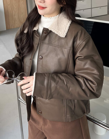 韓系新品-親膚軟皮革QQ熊領騎士外套 2604006-美式咖啡