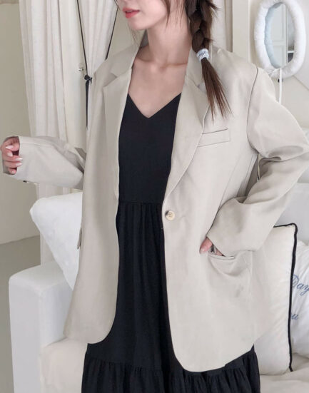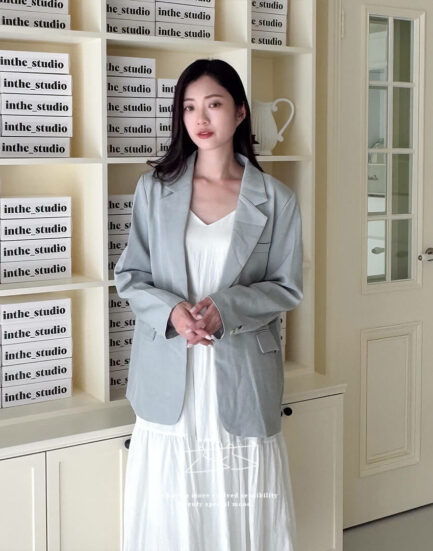 高質感首選--好版型挺版微墊肩西裝外套2504013-奶綠
