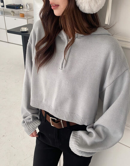 舒服穿搭必選—簡約不簡單開襟連帽針織上衣 2502074-淺淺灰