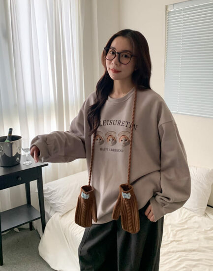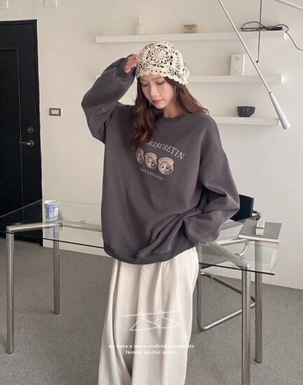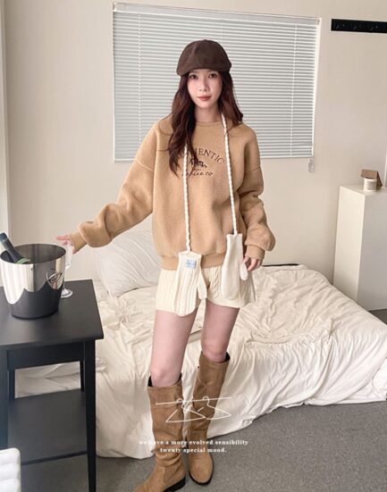 東大門新品上線—貴族QQ毛字母圓領上衣 2501273-咖啡牛奶