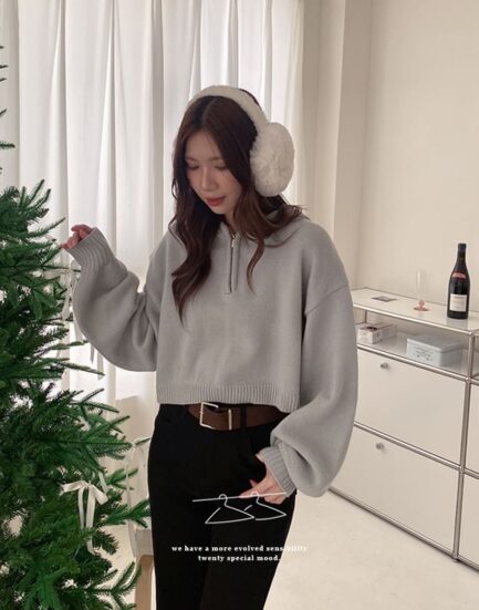 巴黎時裝周—親膚內絨側拉皺柔毛平口上衣 2501272-優雅灰