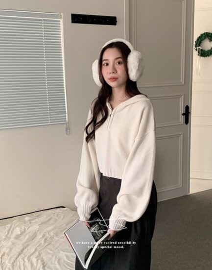 舒服穿搭必選—簡約不簡單開襟連帽針織上衣 2502074-鮮奶茶