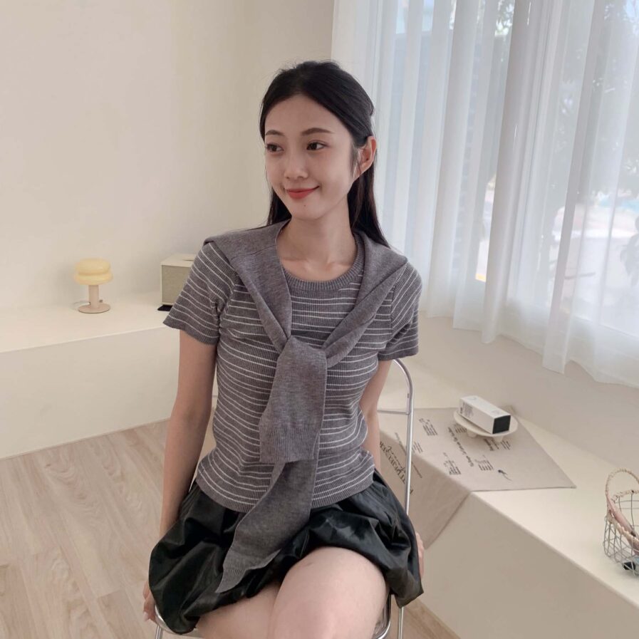 🧶 真兩件設計 彈力針織超親膚✨ 活動自在不緊繃 披肩一體成型設計🩵 穿出層次感與時髦感 柔軟又百搭 是秋季衣櫃必收單品🍂