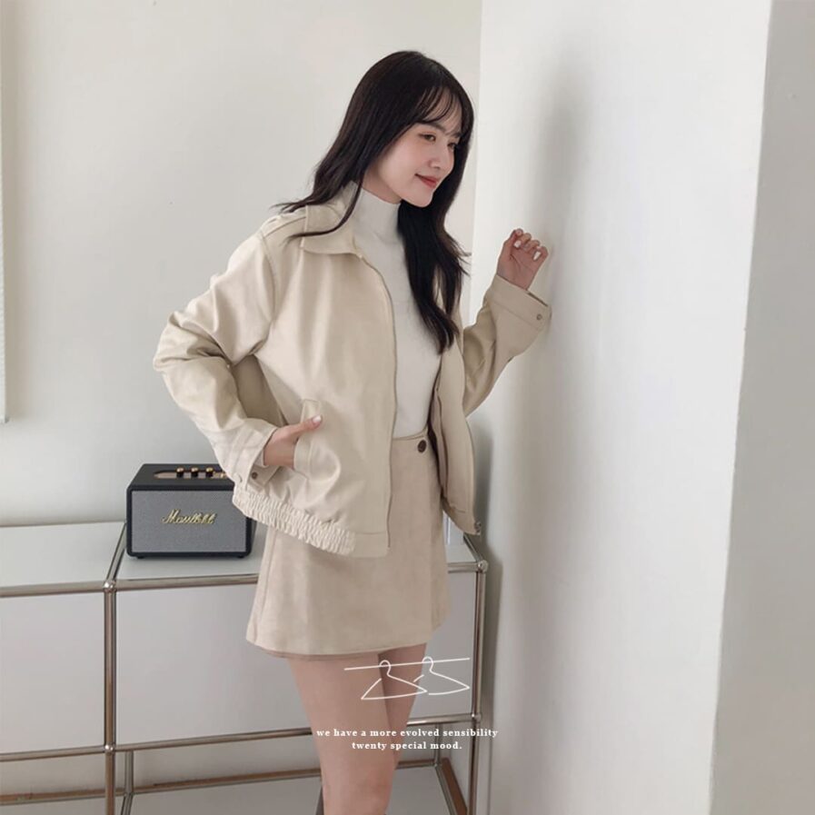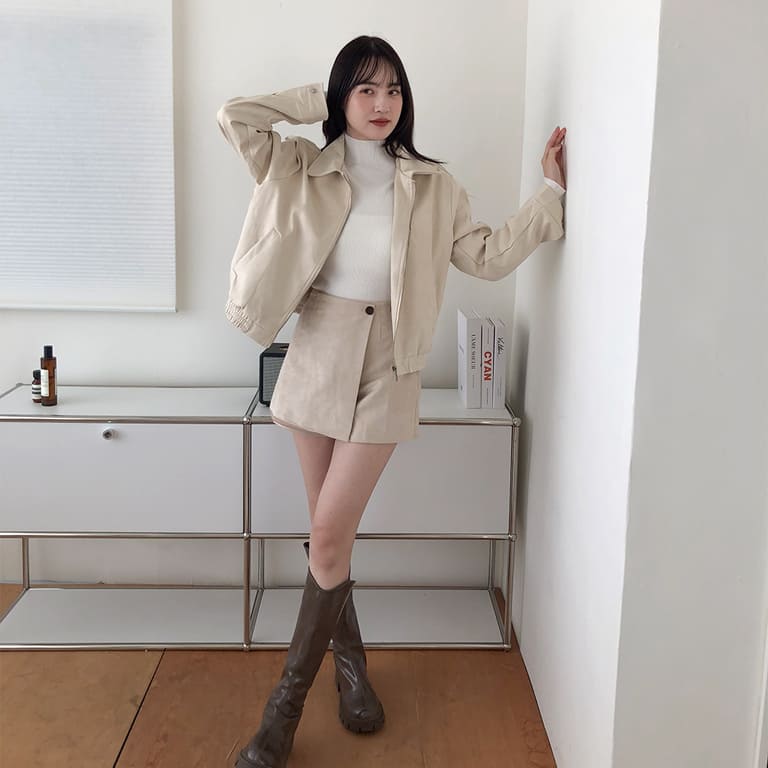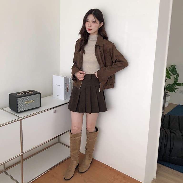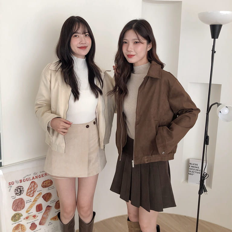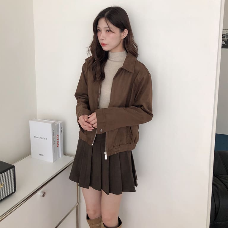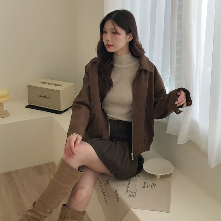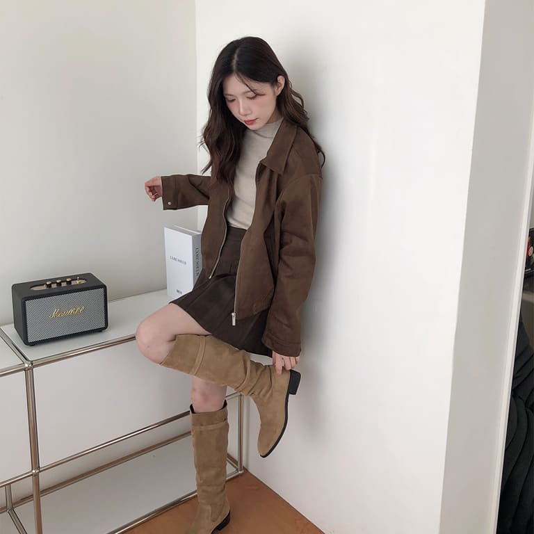 高質感麂皮材質 穿出低調時尚氛圍✨簡約無印設計 百搭又耐看🤍拉鍊細節俐落有型 修飾身形比例超加分💫不論搭裙裝或牛仔褲 都能展現韓系質感氣場👜