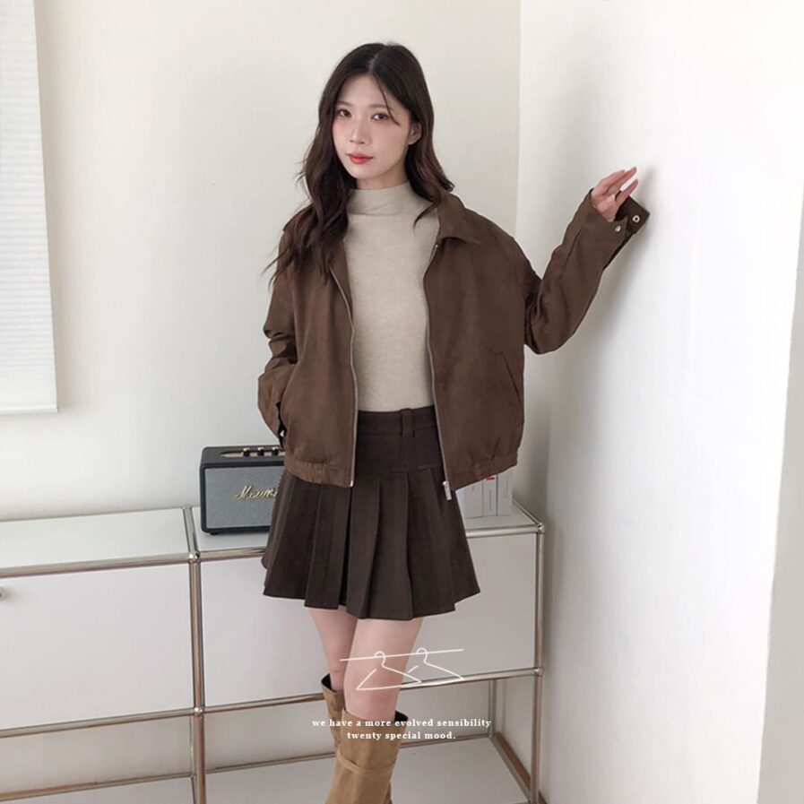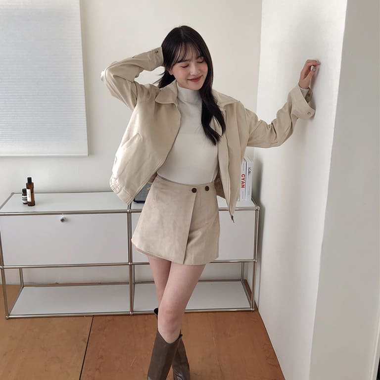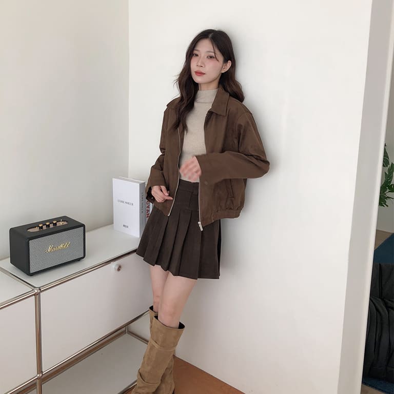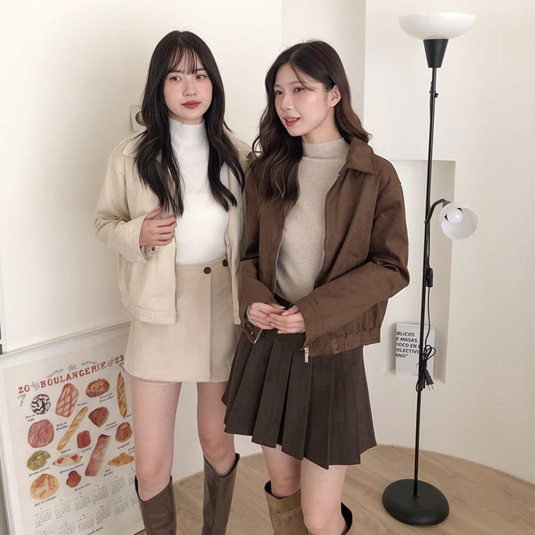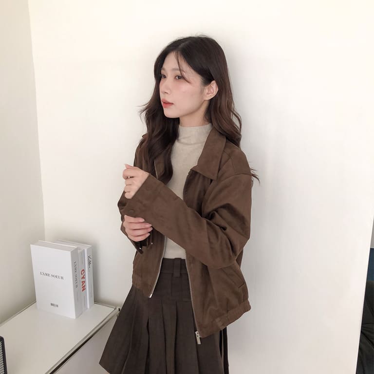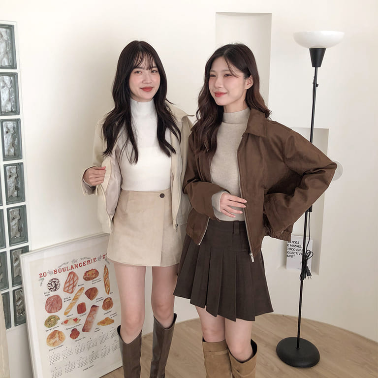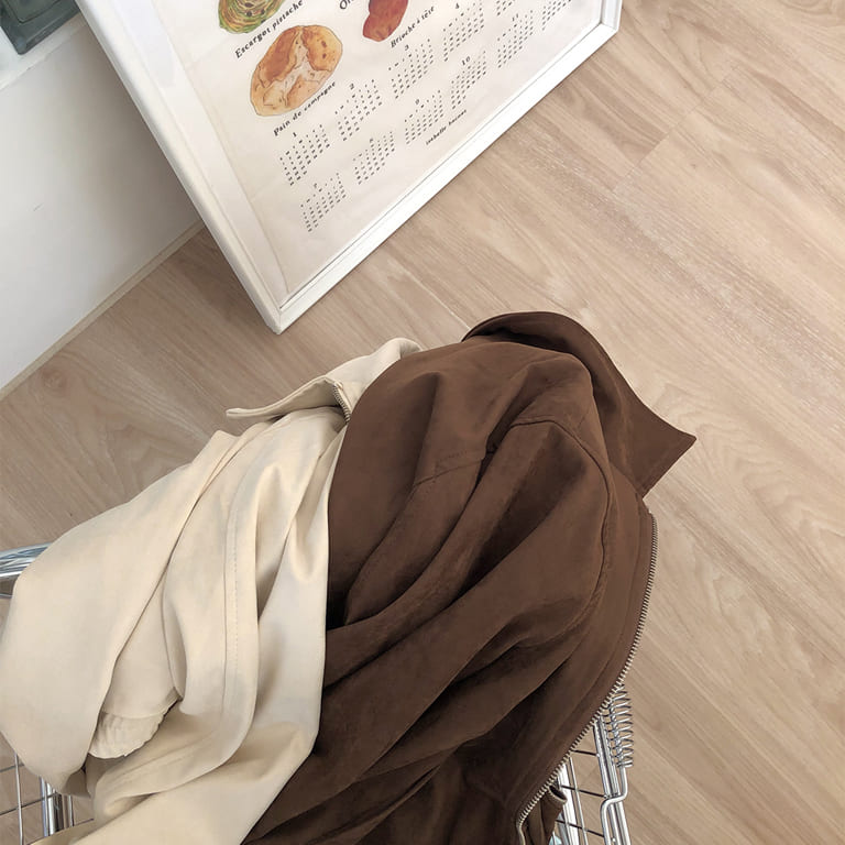 高質感麂皮材質 穿出低調時尚氛圍✨簡約無印設計 百搭又耐看🤍拉鍊細節俐落有型 修飾身形比例超加分💫不論搭裙裝或牛仔褲 都能展現韓系質感氣場👜