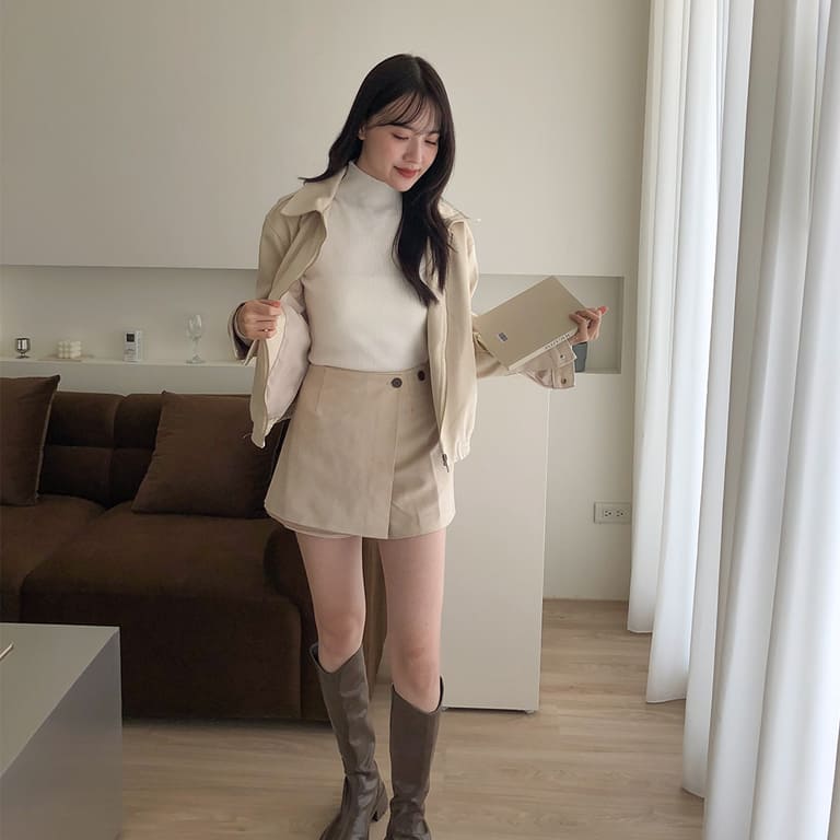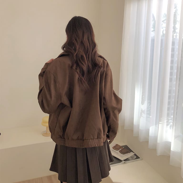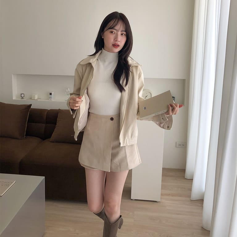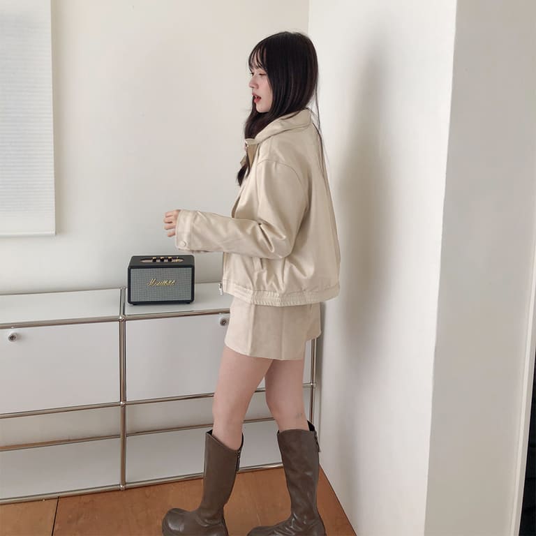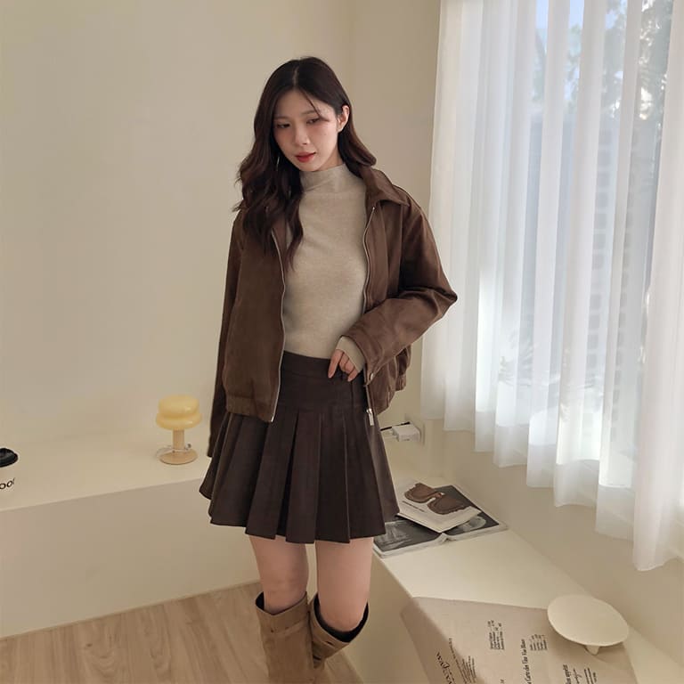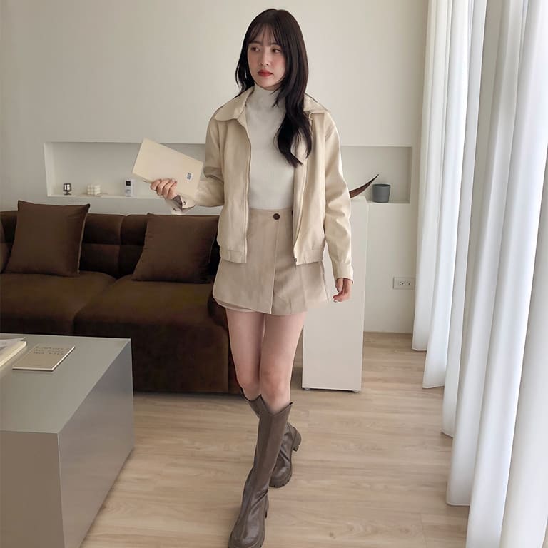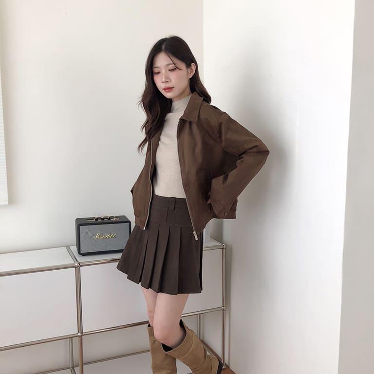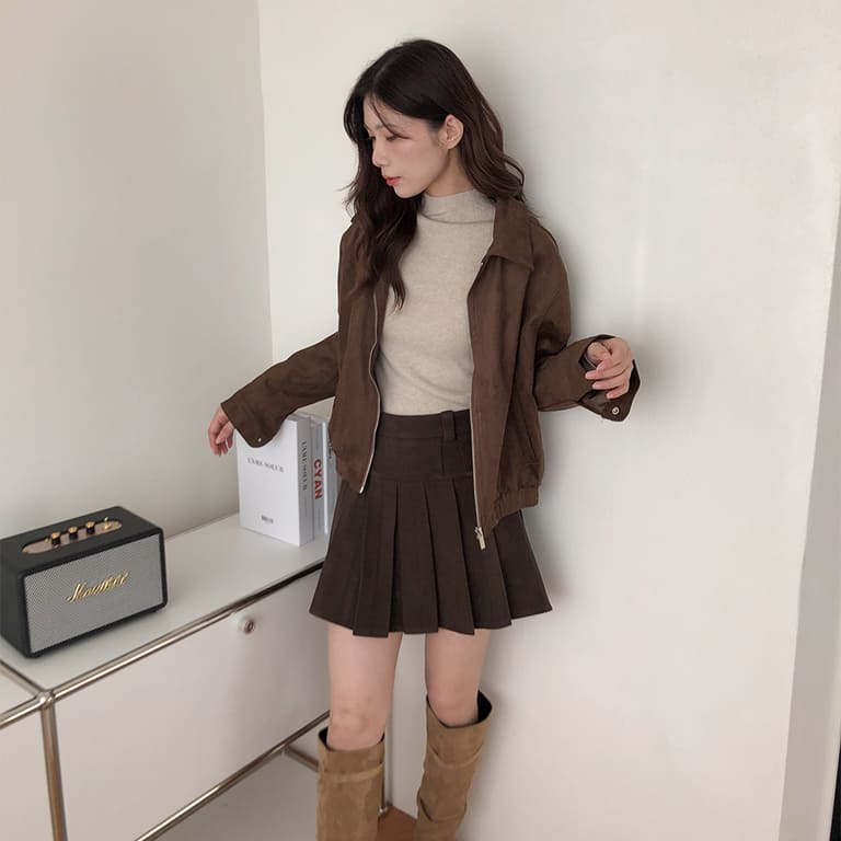 高質感麂皮材質 穿出低調時尚氛圍✨簡約無印設計 百搭又耐看🤍拉鍊細節俐落有型 修飾身形比例超加分💫不論搭裙裝或牛仔褲 都能展現韓系質感氣場👜