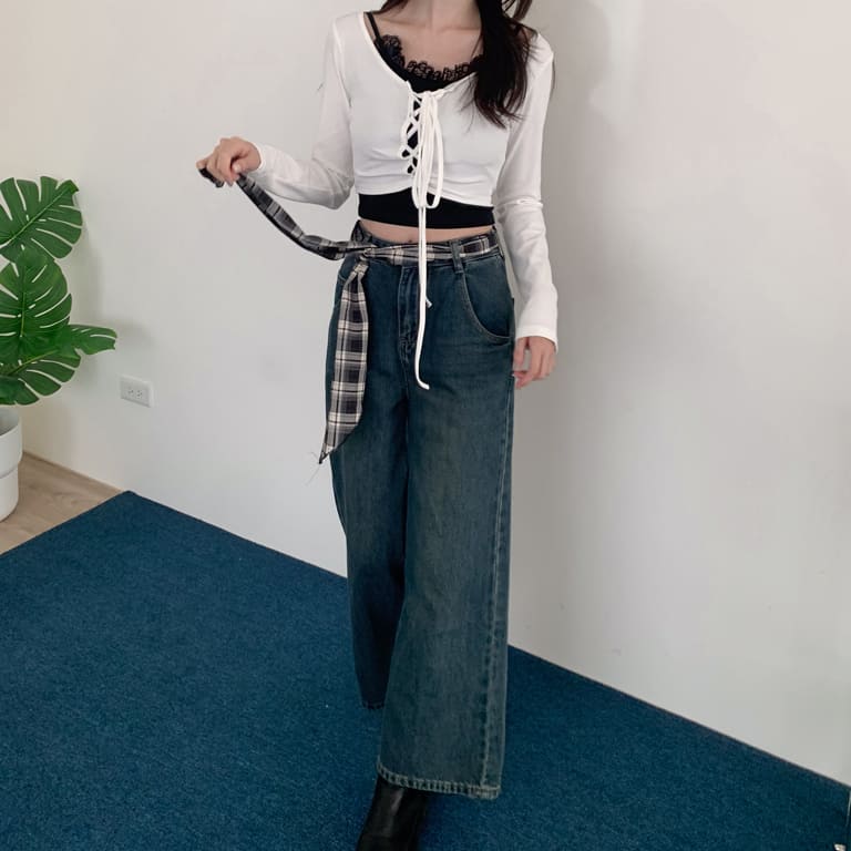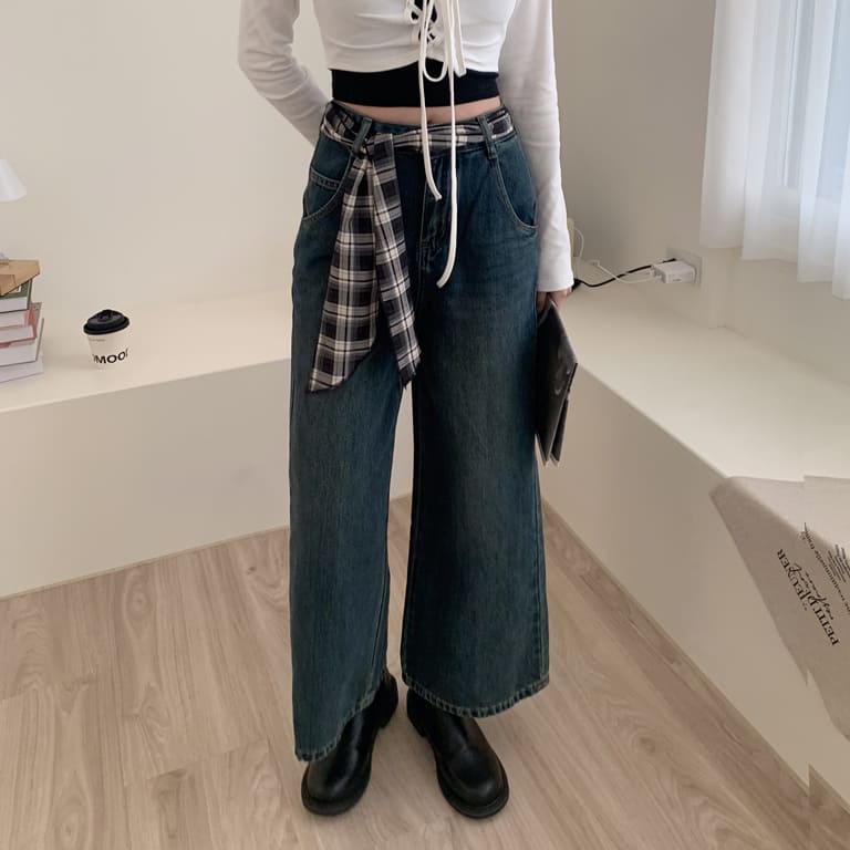 高磅牛仔布料質感滿分 穿久不變形✨刷舊細節打造自然復古氛圍🖤寬鬆版型修飾腿型 顯瘦又顯高💫附腰帶設計更添時髦感 一秒穿出韓妞氣勢👏