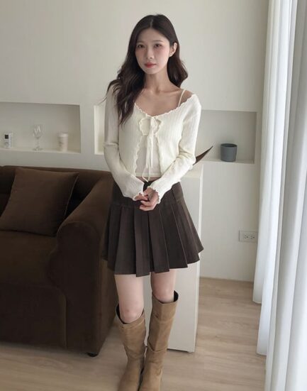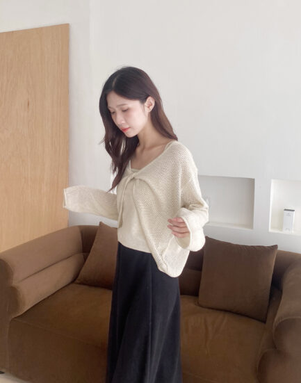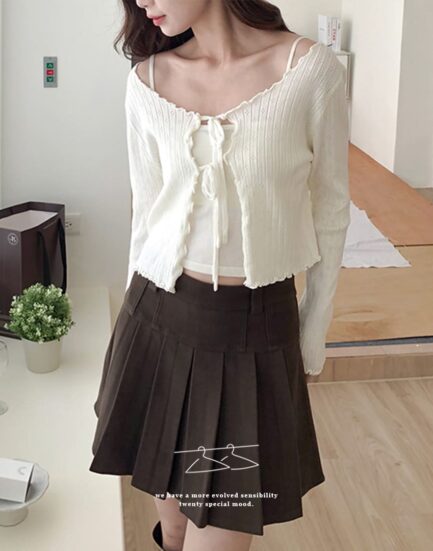 氣質韓妞先修班—兩件式扭結鏤空針織上衣 2502040-鮮奶茶