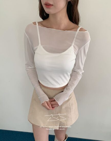 美感純欲--舒芙蕾透膚高質感小可愛上衣 2501245-奶茶