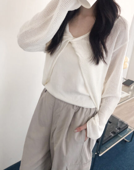 氣質韓妞先修班—兩件式扭結鏤空針織上衣 2502040-氣質白