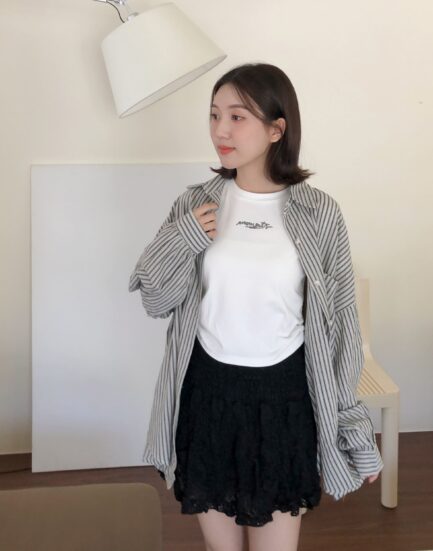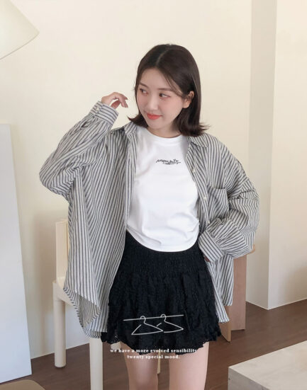 韓妞新歡--遮陽百搭條紋寬版棉麻襯衫 2505010-百搭黑