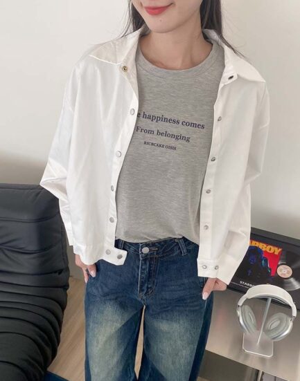 熱銷回歸--酷甜簡約卡其短版襯衫外套 2504015-棉花白