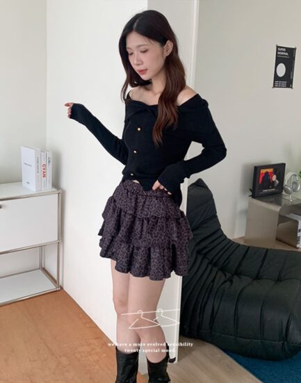 氣質優雅款--金釦一字肩親膚針織上衣 2502027-神秘黑
