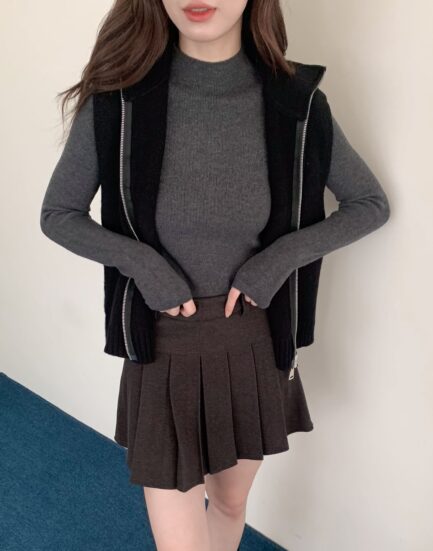 韓妞保暖必備--高保暖雙拉高磅針織背心 2504018-霧調灰