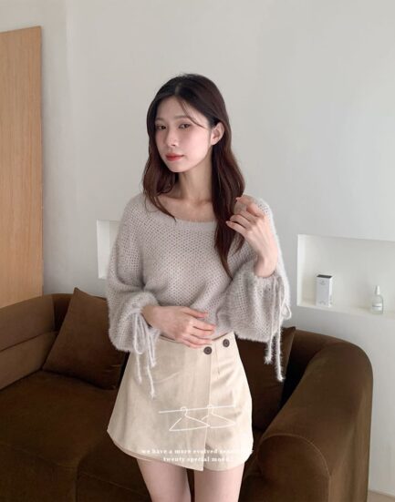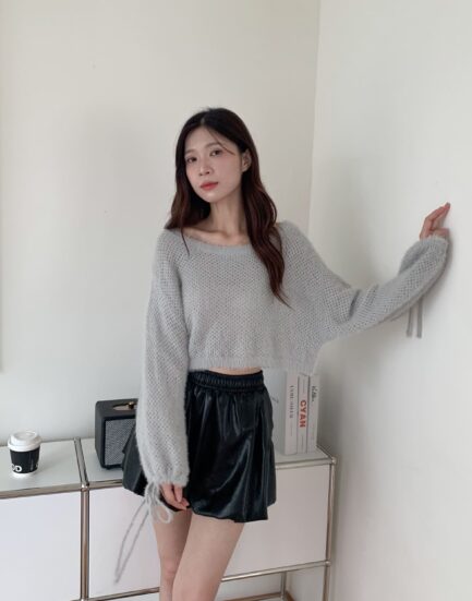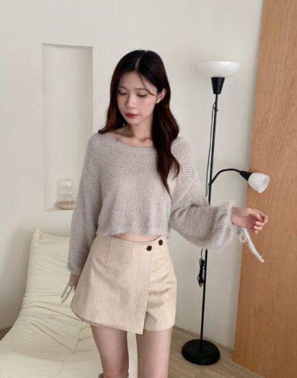 溫柔感get!!新膚馬海毛後空短版針織上衣 2502032-霧調灰