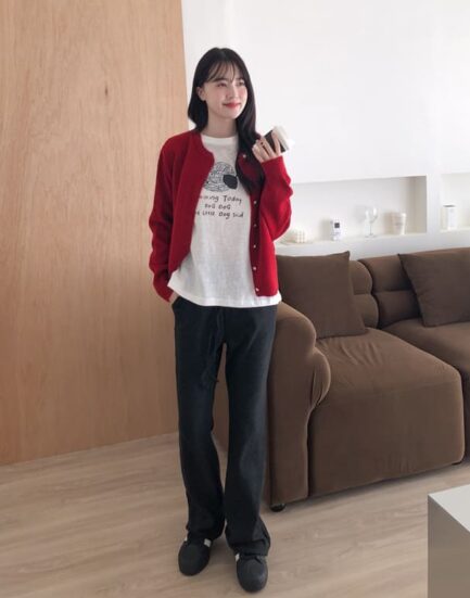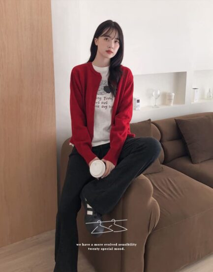 貴族小香款--金釦親膚混羊毛針織上衣 2502030-絕美紅