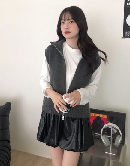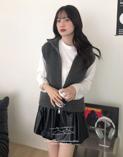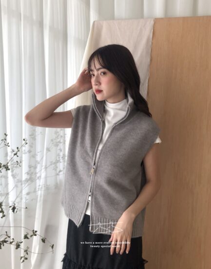 韓妞保暖必備--高保暖雙拉高磅針織背心 2504018-淺淺灰