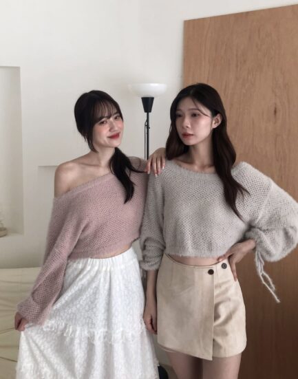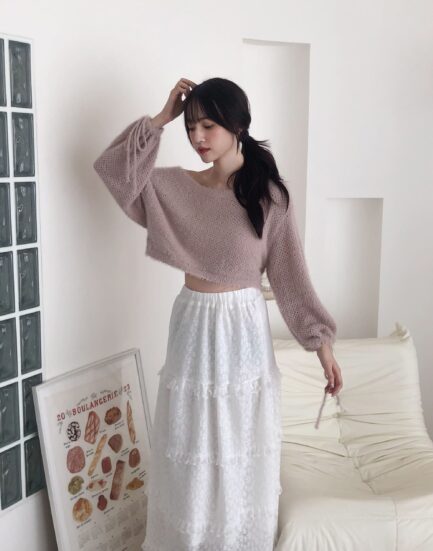 溫柔感get!!新膚馬海毛後空短版針織上衣 2502032-鮮奶茶